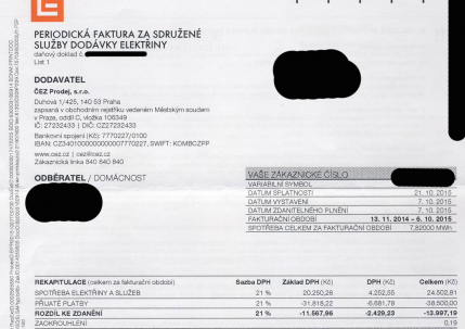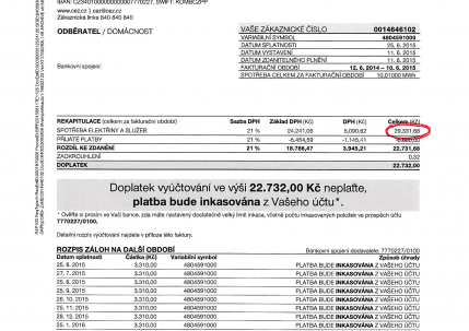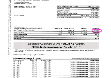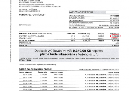 Roční vyúčtování elektřiny na domě RD Rýmařov