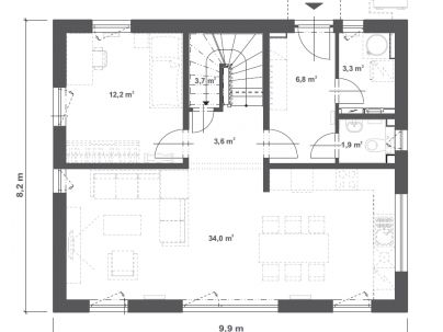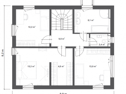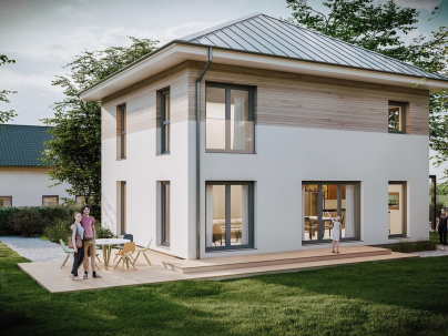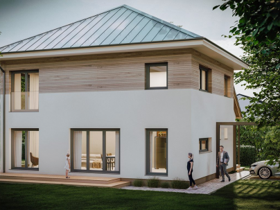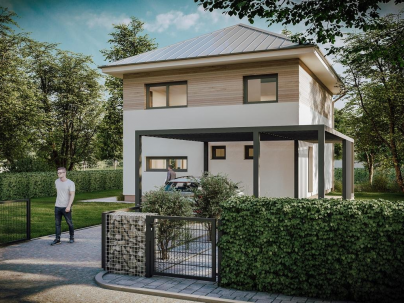 Oblíbená dispozice domu orientovaného celou obytnou částí do zahrady. Plnohodnotný pokoj v přízemí vhodný pro ložnici rodičů a tři prostorné a dobře prosvětlené pokoje v patře činí tento dům oblíbeným pro mladou rozrůstající se rodinu. Architektura domu je vhodná do města i na venkov.