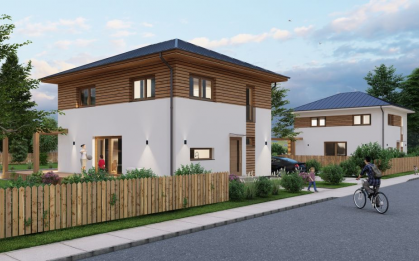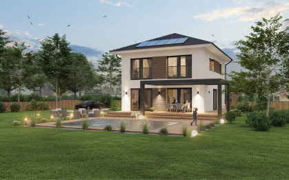 Dům Family 135 zaujme moderním designem, který je ideální také pro menší pozemky. Tento kompaktní dům nabízí promyšlenou otevřenou dispozici s velkými prosklenými plochami, které se rozprostírají přes obě podlaží, tím přinášejí dostatek světla do obývací, jídelní i kuchyňské části. Velké prosklené dveře vedou přímo na prostornou terasu, což je ideální místo pro relaxaci a společenská setkání. V poschodí se nachází ložnice s krásným výhledem a další dvě prostorné místnosti, které poskytují klid a naprosté soukromí. Tento dům dokonale spojuje moderní estetiku s praktickými potřebami rodiny, což z něj činí skvělou volbu pro pohodlné rodinné bydlení.