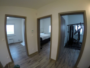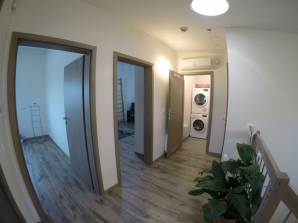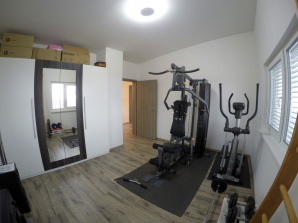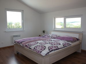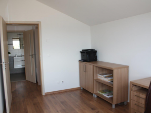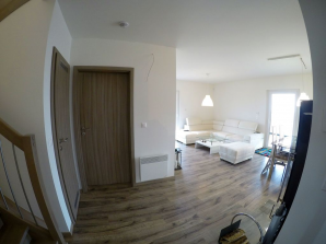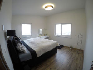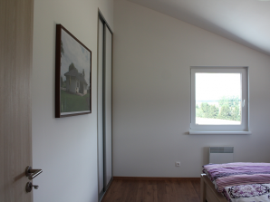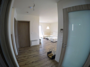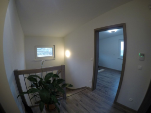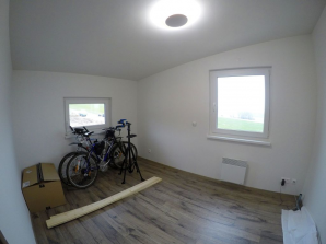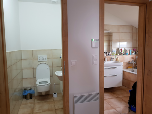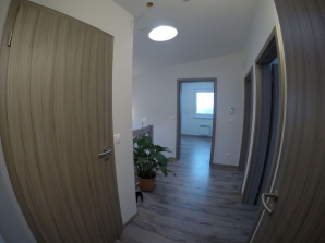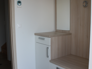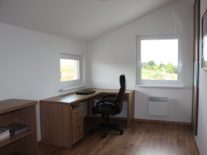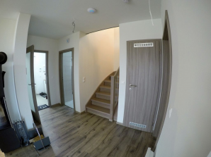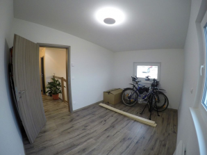 - laminátová podlaha nebo koberec v obytných místnostech a na chodbě v podkroví, v ostatních místnostech dlažba