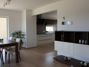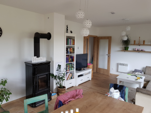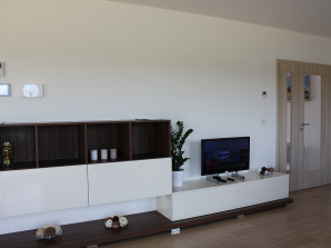 - elektroinstalace od skříně domovního rozvaděče včetně dodávky domovního rozvaděče, v místnostech jsou zabudovány zásuvky a vypínače bílé barvy