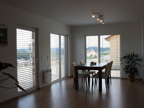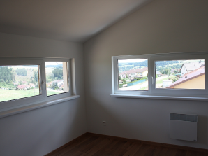- okna a terasové dveře vyrobené z 6-ti komorových PVC profilů v bílé barvě s izolačním trojsklem, součinitel prostupu tepla celého okna Uw ≤ 1,0 W/(m².K)