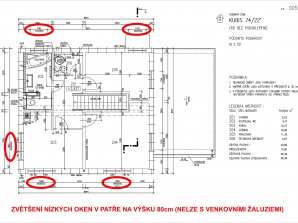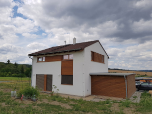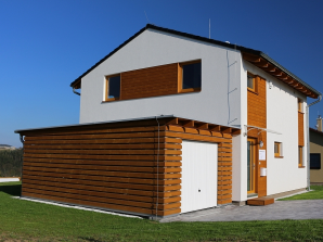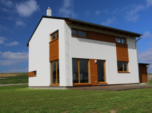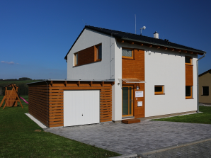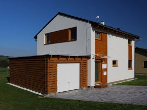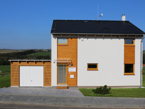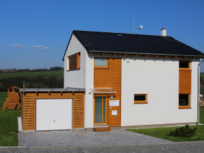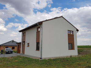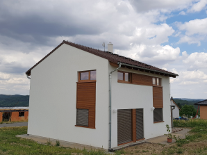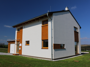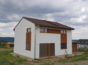 - obvodové stěny s vnitřní izolací 120 + 40 mm a vnější termofasádou 150 mm uzavřenou strukturní barevnou omítkou