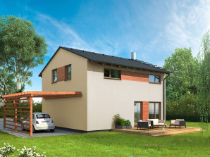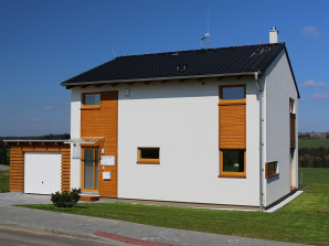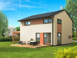 Součástí domu KUBIS 117 je již v základu pergola, která dotáhne design celého domu k dokonalosti. Dům má sedlovou střechu se sklonem 22o, a tak je vhodný do moderní i starší zástavby.