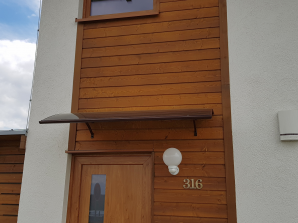 - vchodové domovní dveře v provedení masiv nebo z 5-ti komorových PVC profilů v bílé barvě se třemi závěsy a pětinásobným uzávěrem