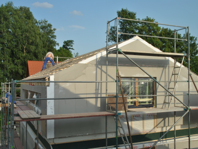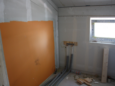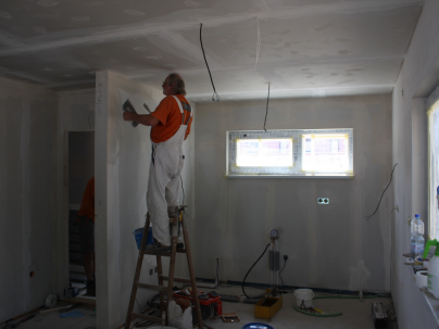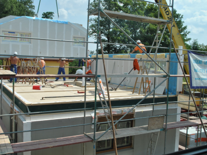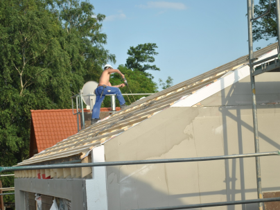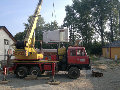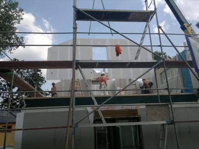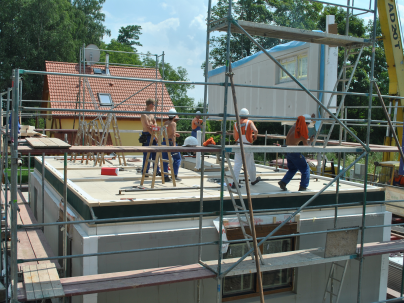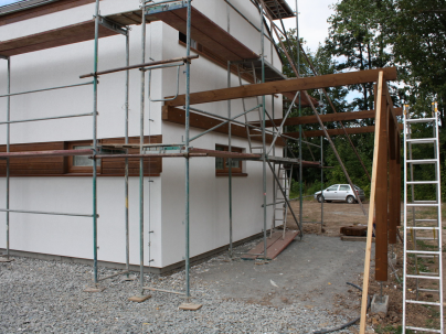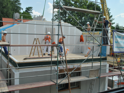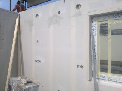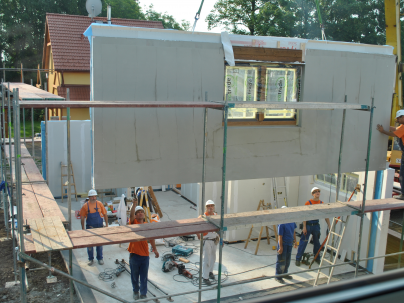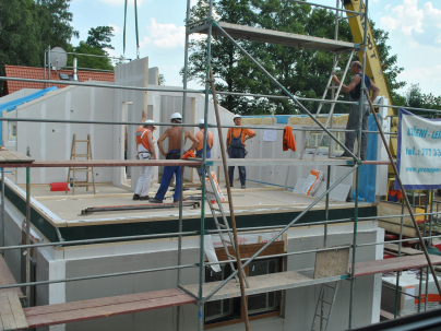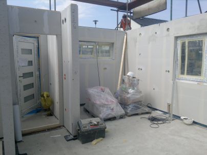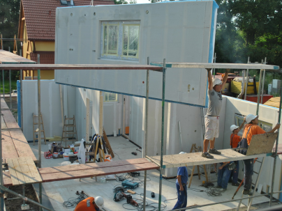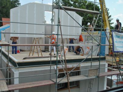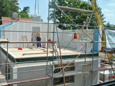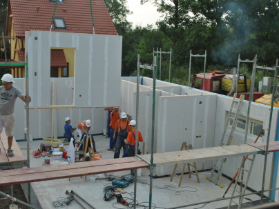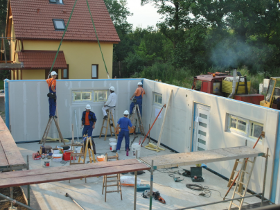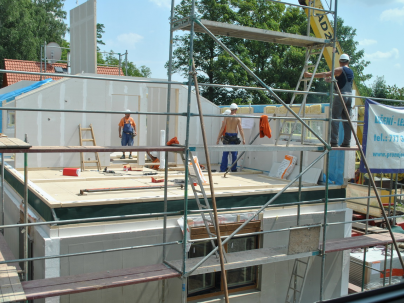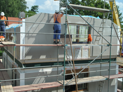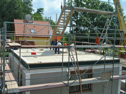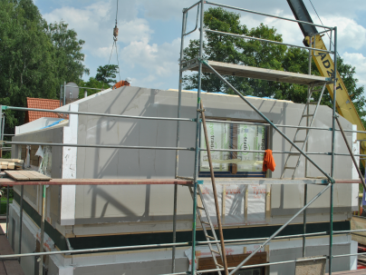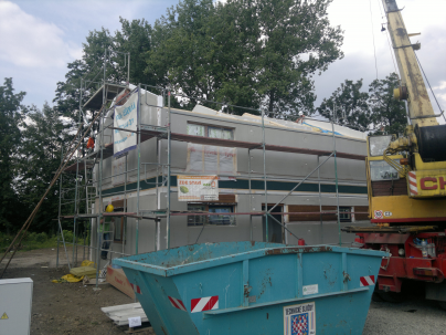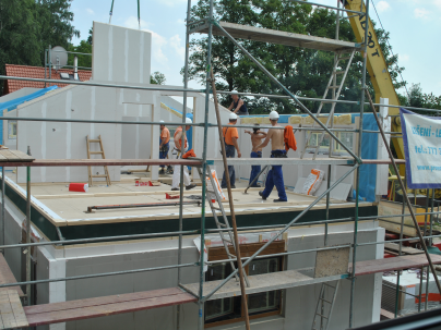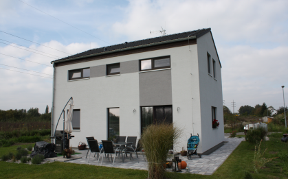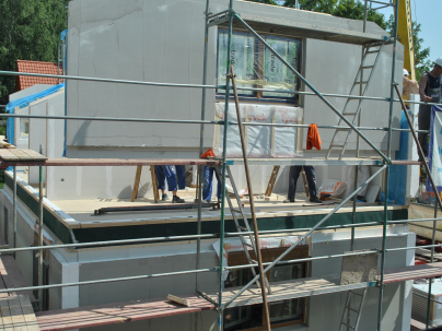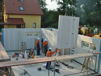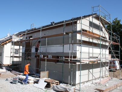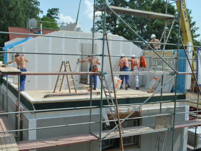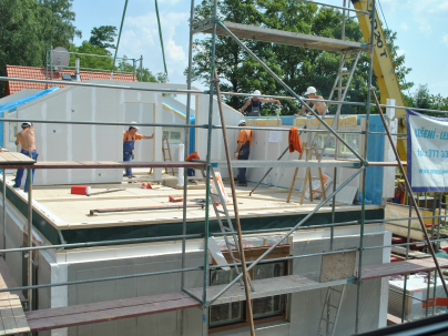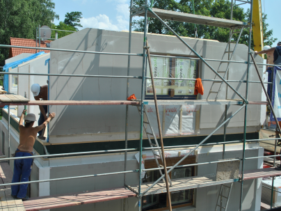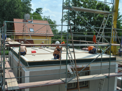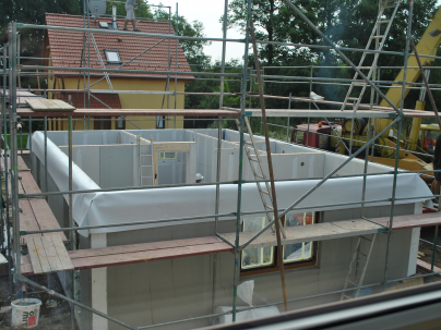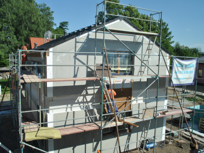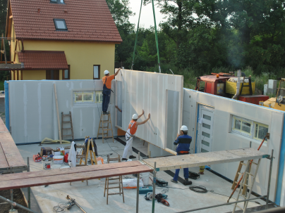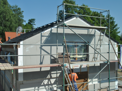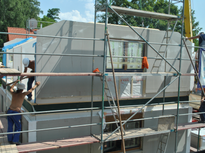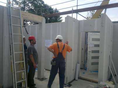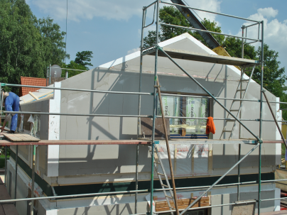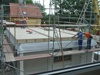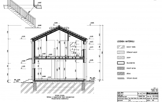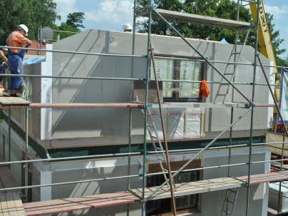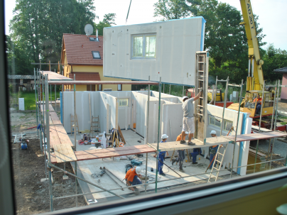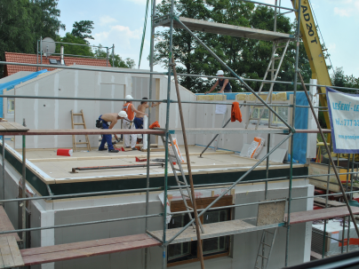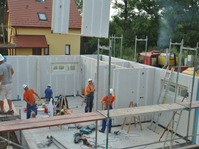 - obvodové stěny s vnitřní izolací 120 + 40 mm a vnější termofasádou 150 mm uzavřenou strukturní barevnou omítkou