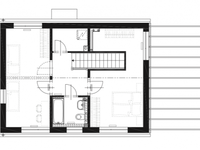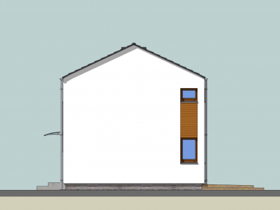 Tento dům není zvětšovaný, s přidaným fixním oknem v obývacím pokoji, horní pokoj je rozdělený na dva dětské pokoje s přidanými okny ve štítě. Koupelna v patře má zkosenou příčku (varianta koupelny číslo 3), v ložnici je vestavná skříň nad schodištěm a prakticky řešená otevřená šatna.