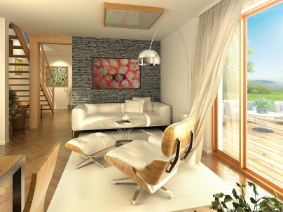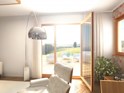 - okna a terasové dveře vyrobené z 6-ti komorových PVC profilů v bílé barvě s izolačním trojsklem, součinitel prostupu tepla celého okna Uw ≤ 1,0 W/(m².K)