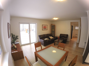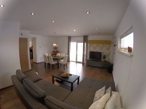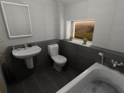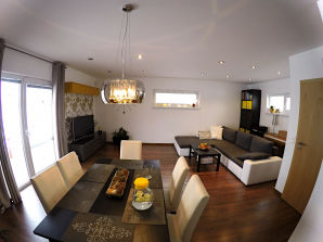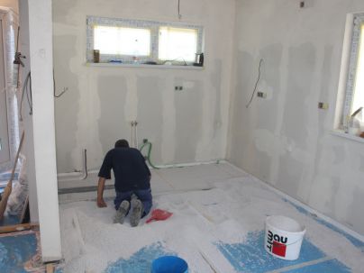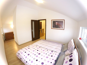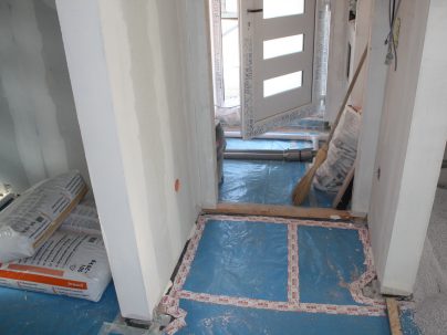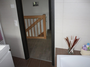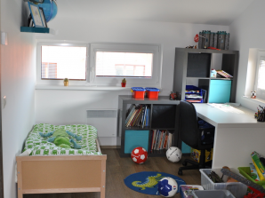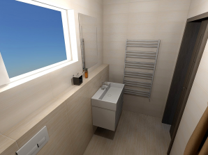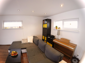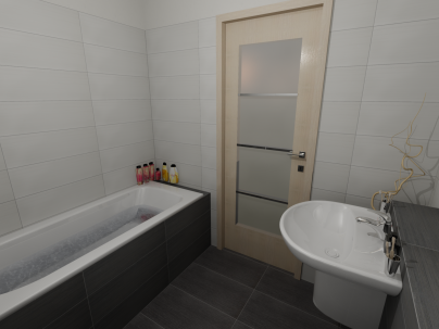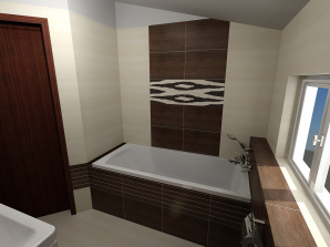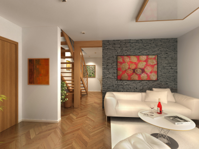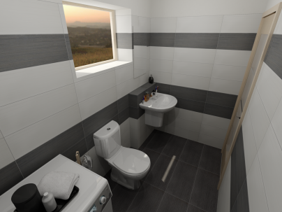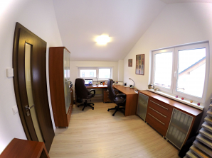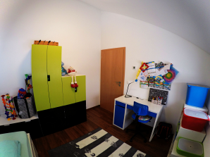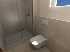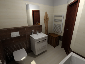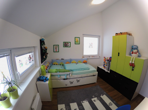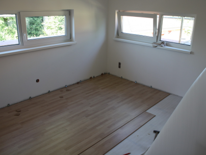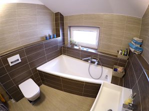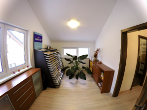 - laminátová podlaha nebo koberec v obytných místnostech a na chodbě v podkroví, v ostatních místnostech dlažba