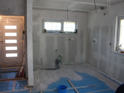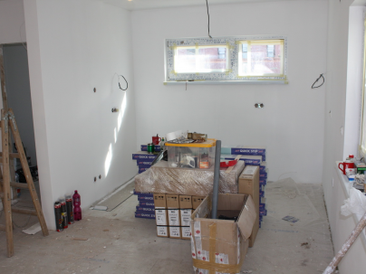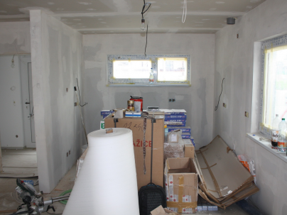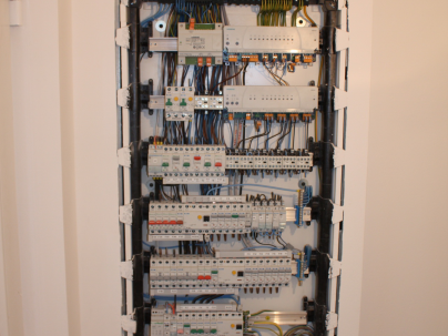 - elektroinstalace od skříně domovního rozvaděče včetně dodávky domovního rozvaděče, v místnostech jsou zabudovány zásuvky a vypínače bílé barvy