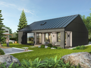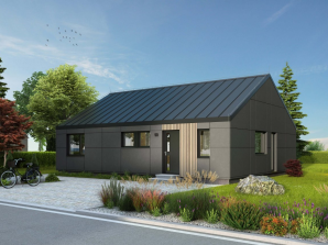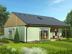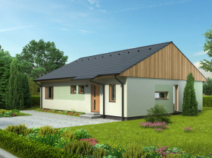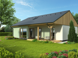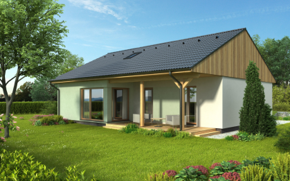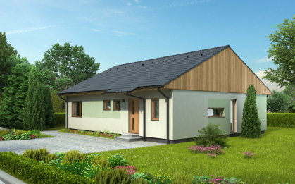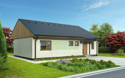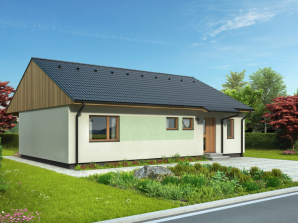 Tato varianta domu Bungalov 90 má tradiční sedlovou střechu s štítovým dřevem.