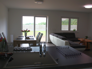 - okna a terasové dveře vyrobené z 6-ti komorových PVC profilů v bílé barvě s izolačním trojsklem, součinitel prostupu tepla celého okna Uw ≤ 1,0 W/(m².K)