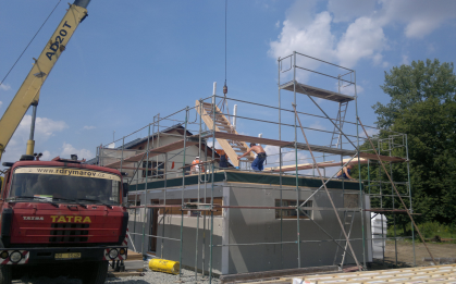 Montáž domu probíhá celoročně, nezastaví nás ani mráz. Jediný rozdíl je ve finální barevné úpravě fasády, ta se dodělává až na jaře.